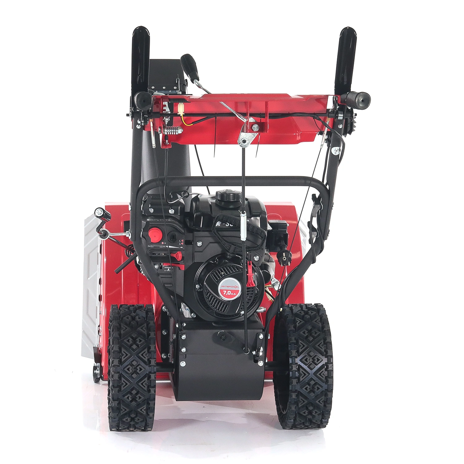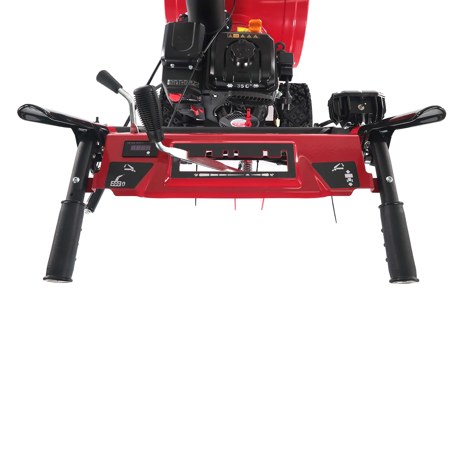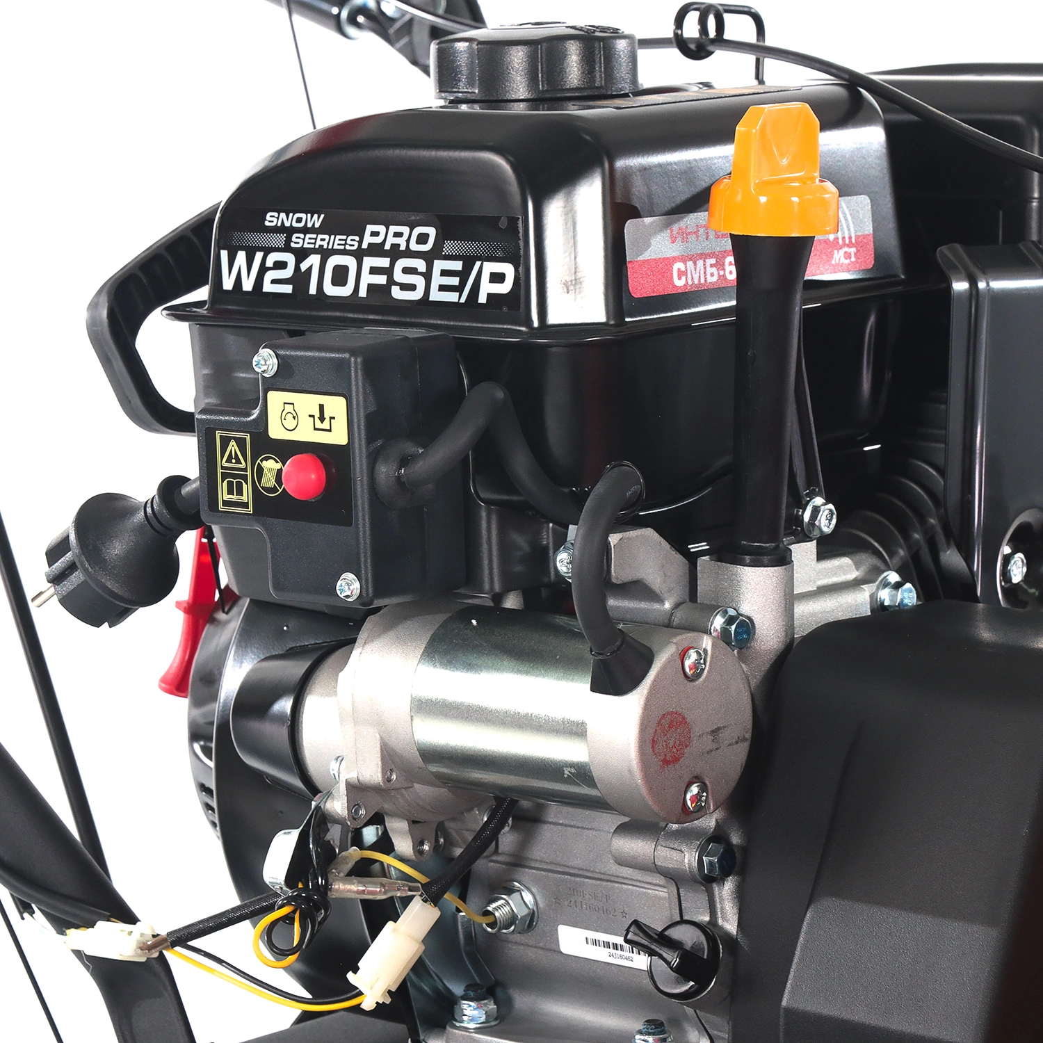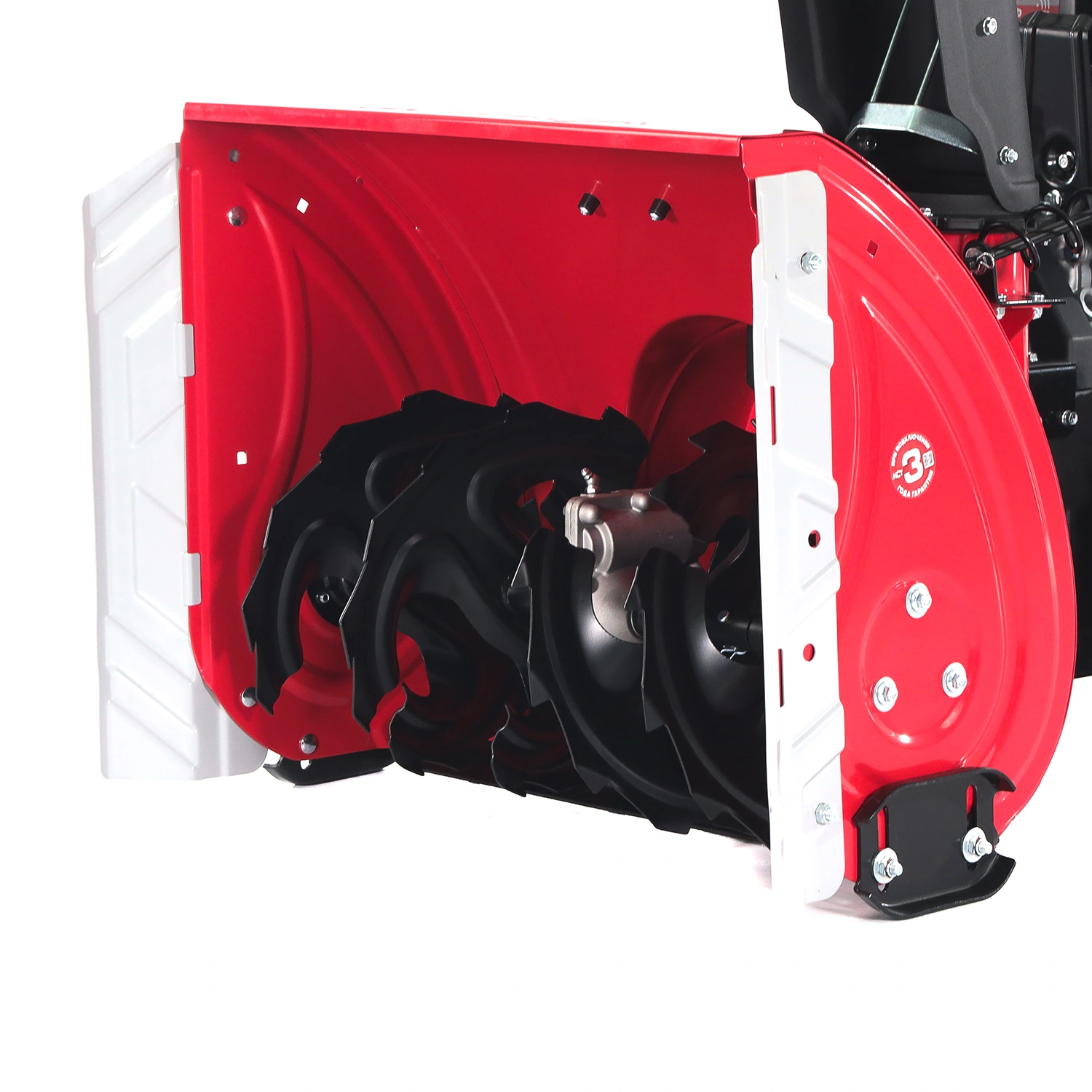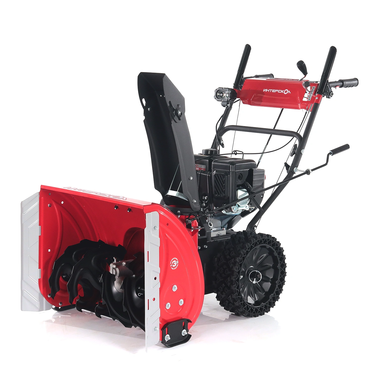 - Двухступенчатая система выброса со стальным шнеком позволит справиться даже с уборкой плотного слежавшегося снега и измельчением ледяного наста