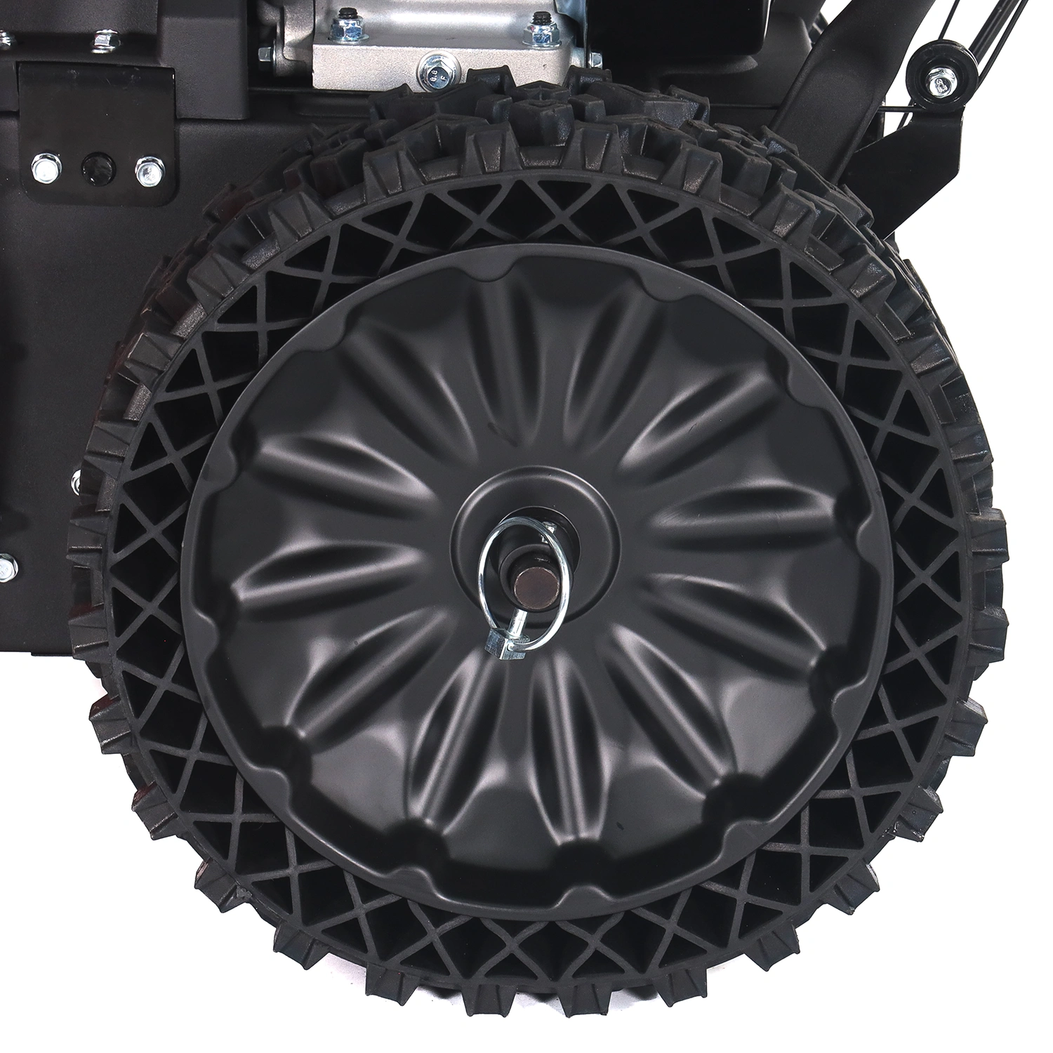 - Колеса с увеличенными 14 дюймовыми безвоздушными колесами обеспечивают отличную проходимость в глубоком снегу и на льду
