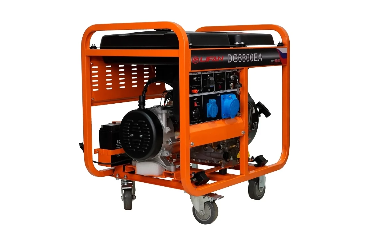 Дизельный генератор LIFAN DG 6500 EA – надежный источник электроэнергии для дома, дачи, мастерской или строительной площадки. Благодаря системе автоматического запуска он готов включиться даже без вашего участия, что особенно важно в условиях отсутствия централизованного электроснабжения. Мощность составляет 5 кВт, а значит можно подключить практически любой бытовой инструмент или оборудование. Удобство использования достигается за счёт наличия колес для транспортировки и многофункционального цифрового дисплея со счетчиком моточасов.