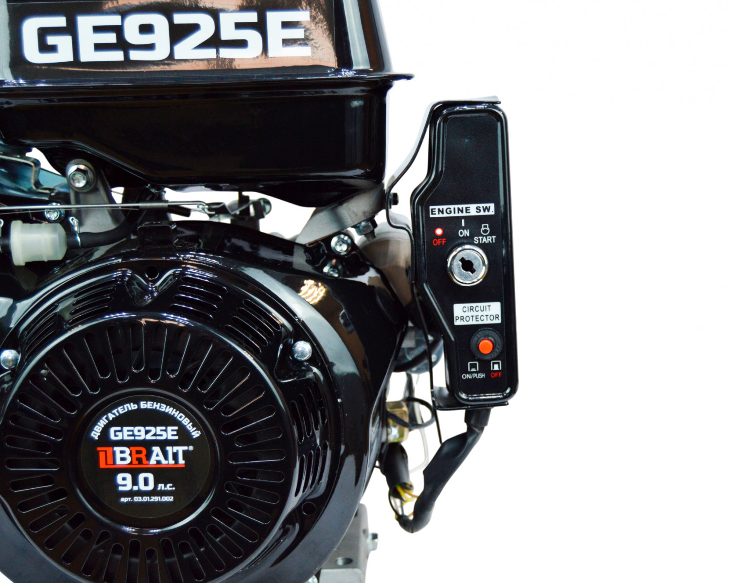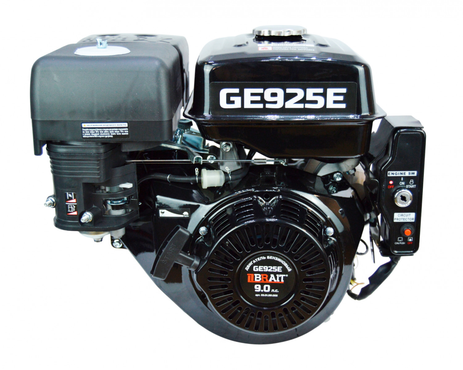 Бензиновый двигатель Brait GE925E мощностью 9 л.с., с электростартером, вал 25 мм, длина вала 71 мм.
