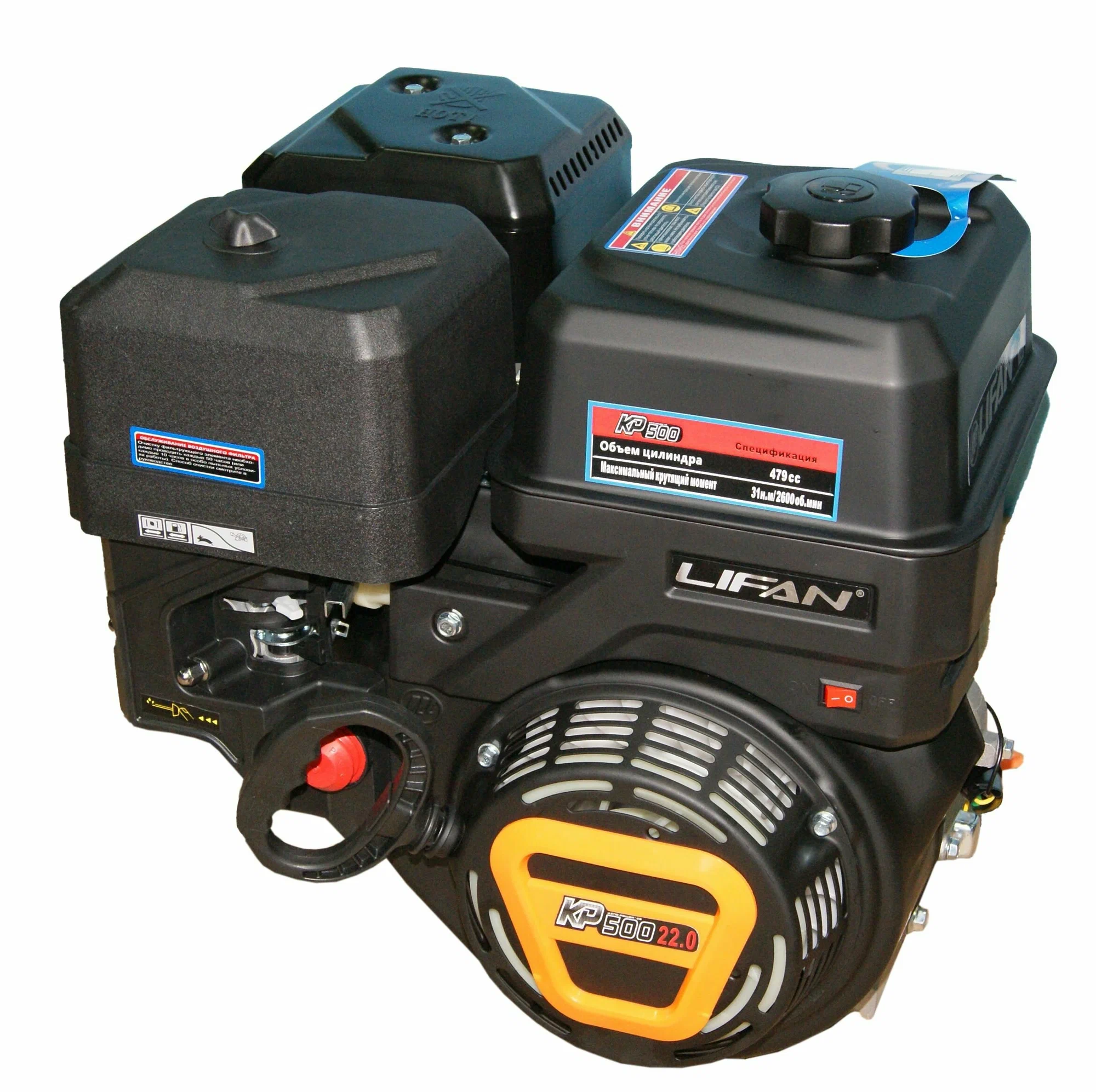 Бензиновый двигатель Lifan KP500-R на 22 л.с. с понижающим редуктором 2:1, автоматическим сцеплением и катушкой освещения от 0,6 до 18 А (в зависимости от комплектации).