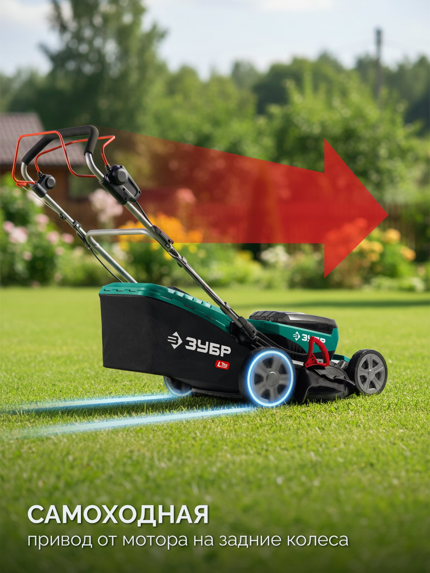 Аккумуляторная газонокосилка самоходная ЗУБР ГКЛ-4050-42