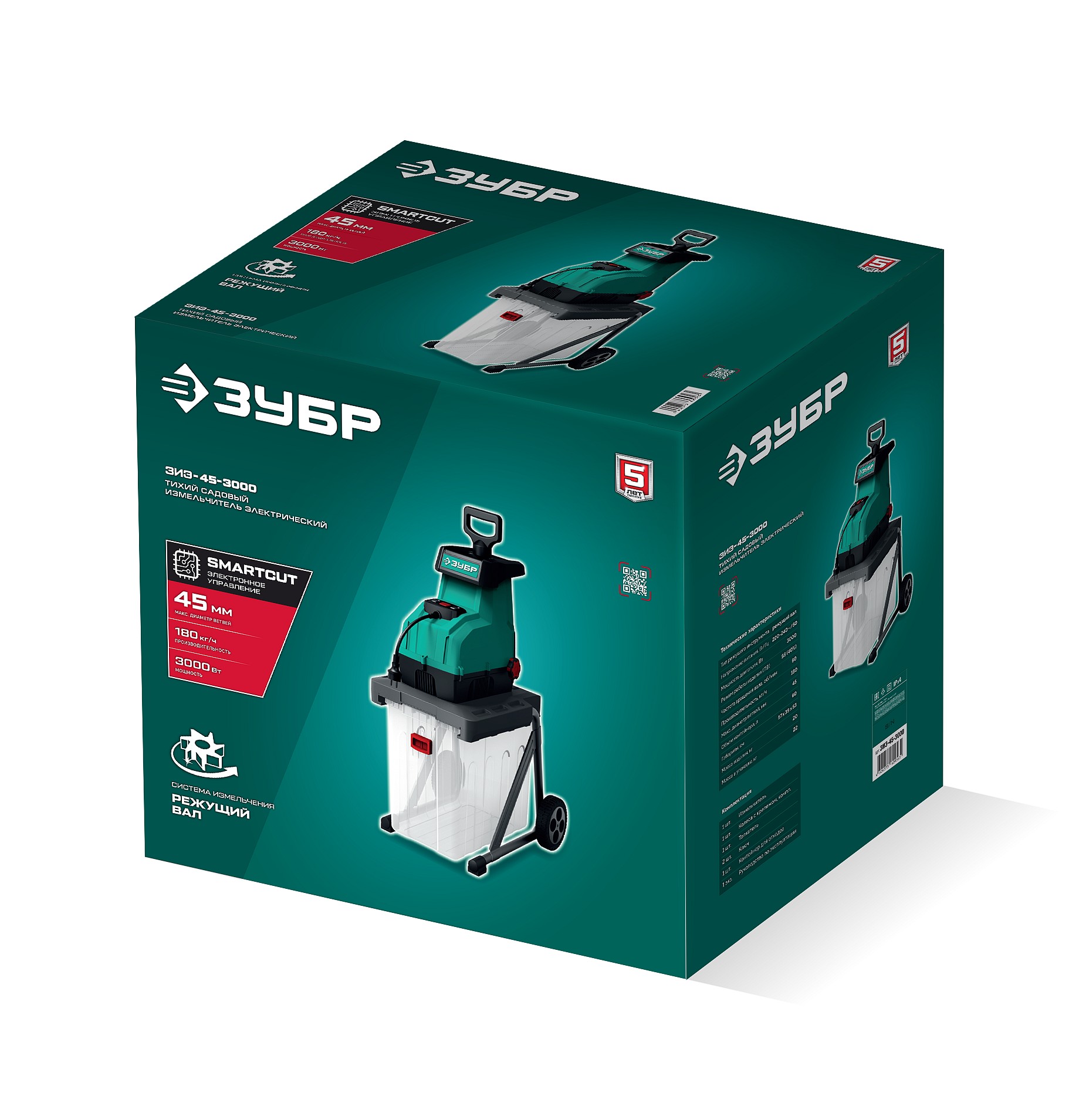 Электрический садовый измельчитель Зубр ЗИЭ-45-3000 - мощный и малошумный измельчитель с двигателем мощность 3000 Вт. Система измельчения - вал, который позволяет перерабатывать ветки до 45 мм. Работает чень тихо, благодаря чему вы не будете уставать от шума. Пластиковый контейнер служит для сбора отходов. Наличие колес позволяет перемещать измельчитель в удобное для вас место на участке.