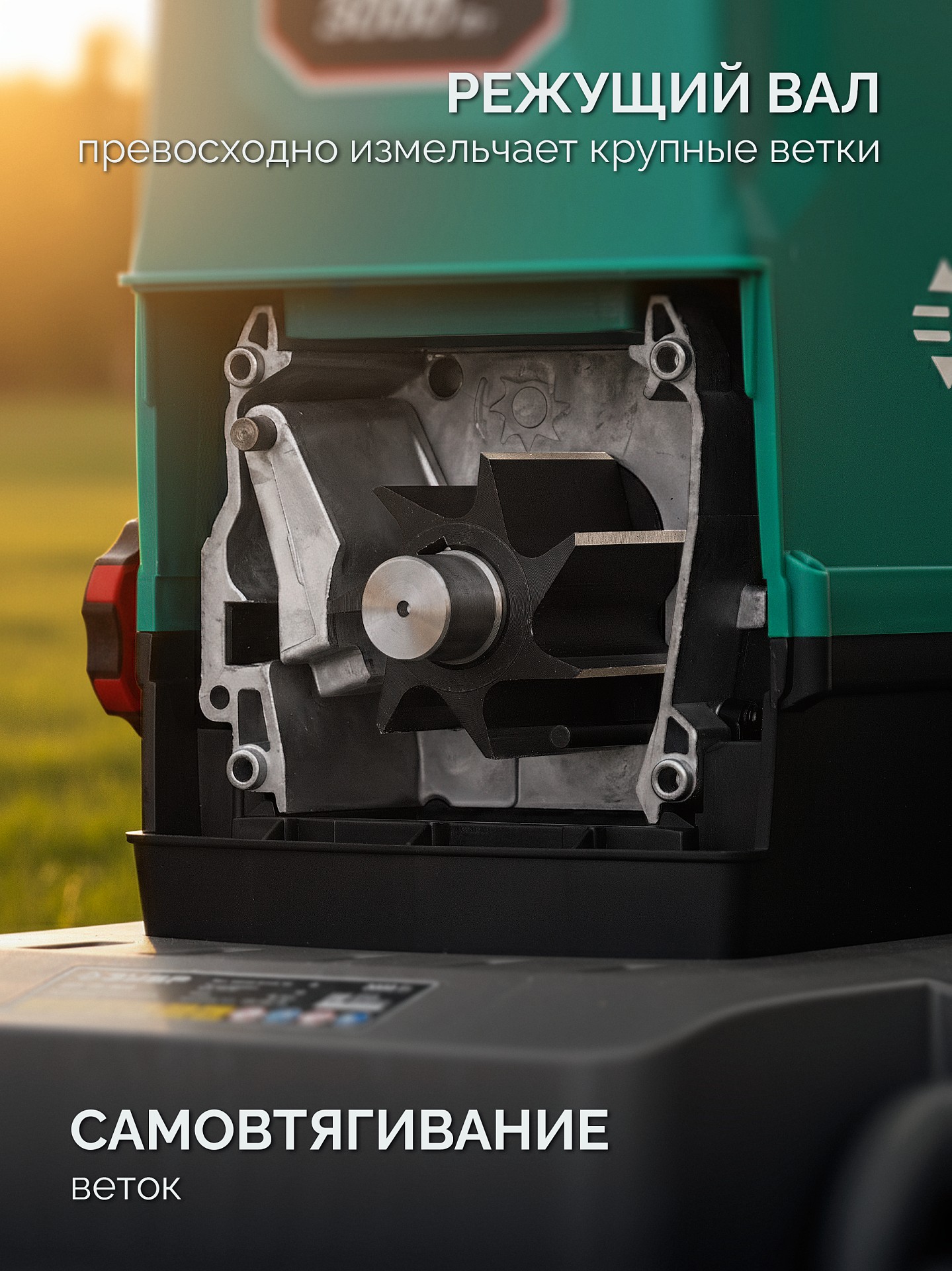 - Универсальный инструмент для утилизации садовой растительности любого типа - от свежей травы до твердых пород дерева
