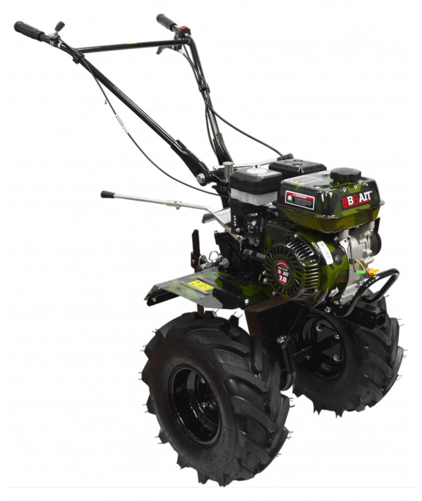 Мотоблок бензиновый BRAIT BR-303H поставляется в цвете камуфляж. Оснащен двигателем мощностью в 7 лошадиных сил благодаря четырехтактному двигателю марки Brait. Он оборудован регулируемым по вертикали и горизонтали рулем, что позволяет максимально удобно разместиться оператору любого роста. Вес устройства составляет всего 75 кг, а глубина обработки достигает 30 см. Благодаря своим характеристикам этот агрегат станет незаменимым помощником как на небольшом участке земли, так и во время выполнения работ больших объемов.