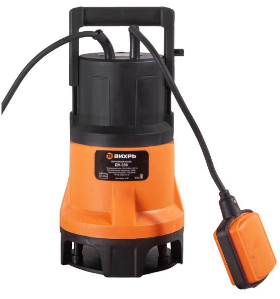 Дренажный насос ВИХРЬ ДН-350 предназначен для автоматического откачивания воды из колодцев, погребов, прудов, бассейнов и других резервуаров. Применяется в системах полива и орошения, а также для понижения уровня грунтовых вод. Оснащён асинхронным однофазным двигателем с короткозамкнутым ротором мощностью 350 Вт. Имеет поплавковую систему автоматического отключения при низком уровне перекачиваемой воды. Оборудован термопротектором для защиты двигателя от перегрева. Способен перекачивать воду с содержанием механических примесей до 5% от объёма воды и размером до 35 мм. Развивает производительность 8000 л/ч и обеспечивает напор до 5 м. Корпус из ударопрочного пластика надёжно защищает насос от повреждений и не подвержен коррозии.