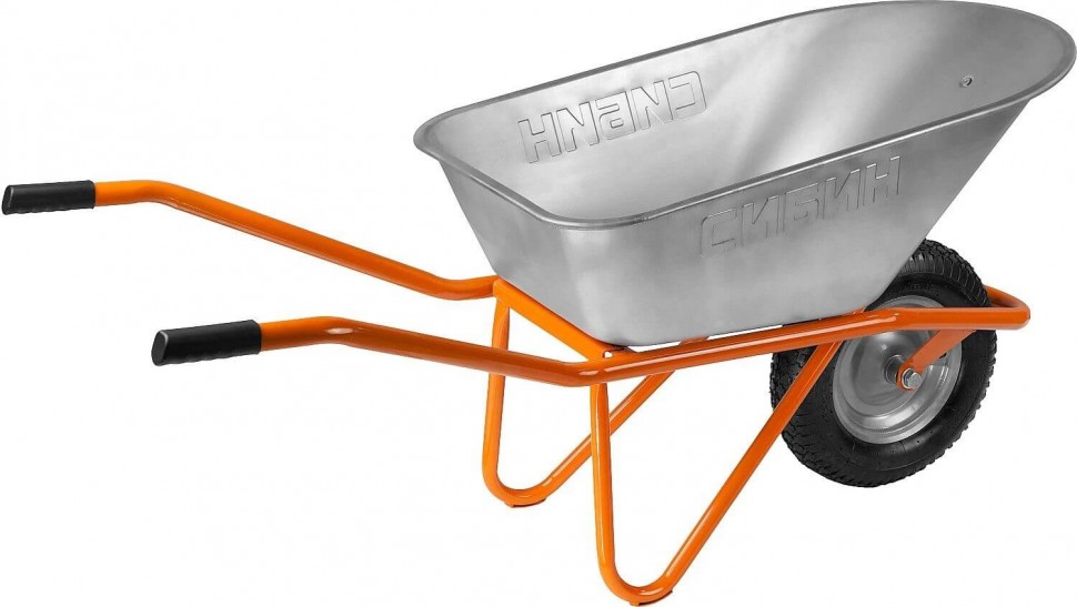Одноколесная строительная тачка СИБИН "СТ-12" отличается высокой прочностью, значительной грузоподъемностью, отличной маневренностью и продолжительным сроком службы. В конструкции модели использованы стальные подшипники. Она предназначена для перевозки разнообразных грузов в процессе строительных операций.