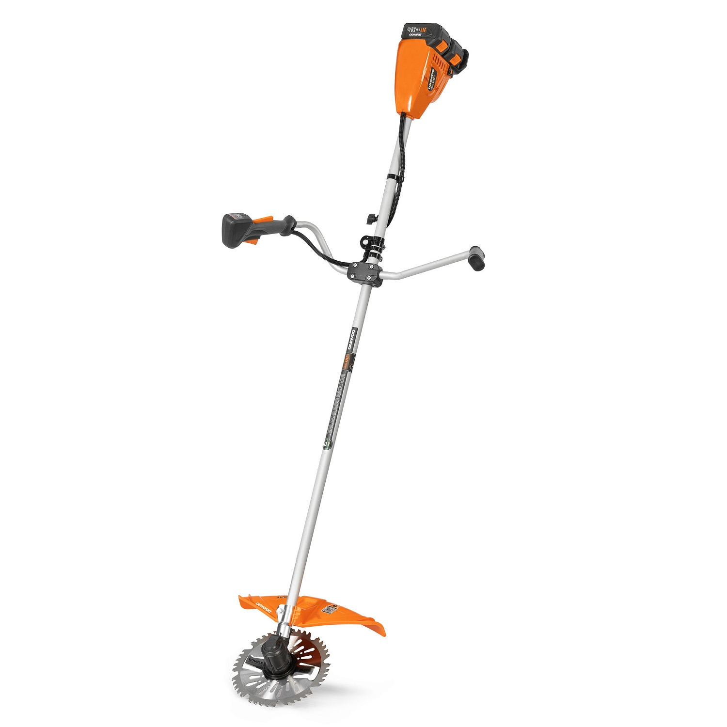 Триммер аккумуляторный DAEWOO DABC 4242Li SET оснащен бесщеточным двигателем. Цельная штанга гарантирует надежность. Два аккумулятора по 5 А/ч позволяют работать продолжительное время без подзарядки. Кроме того, он имеет две режущие насадки — леску и диск, которые делают этот инструмент универсальным решением для ухода за садом.