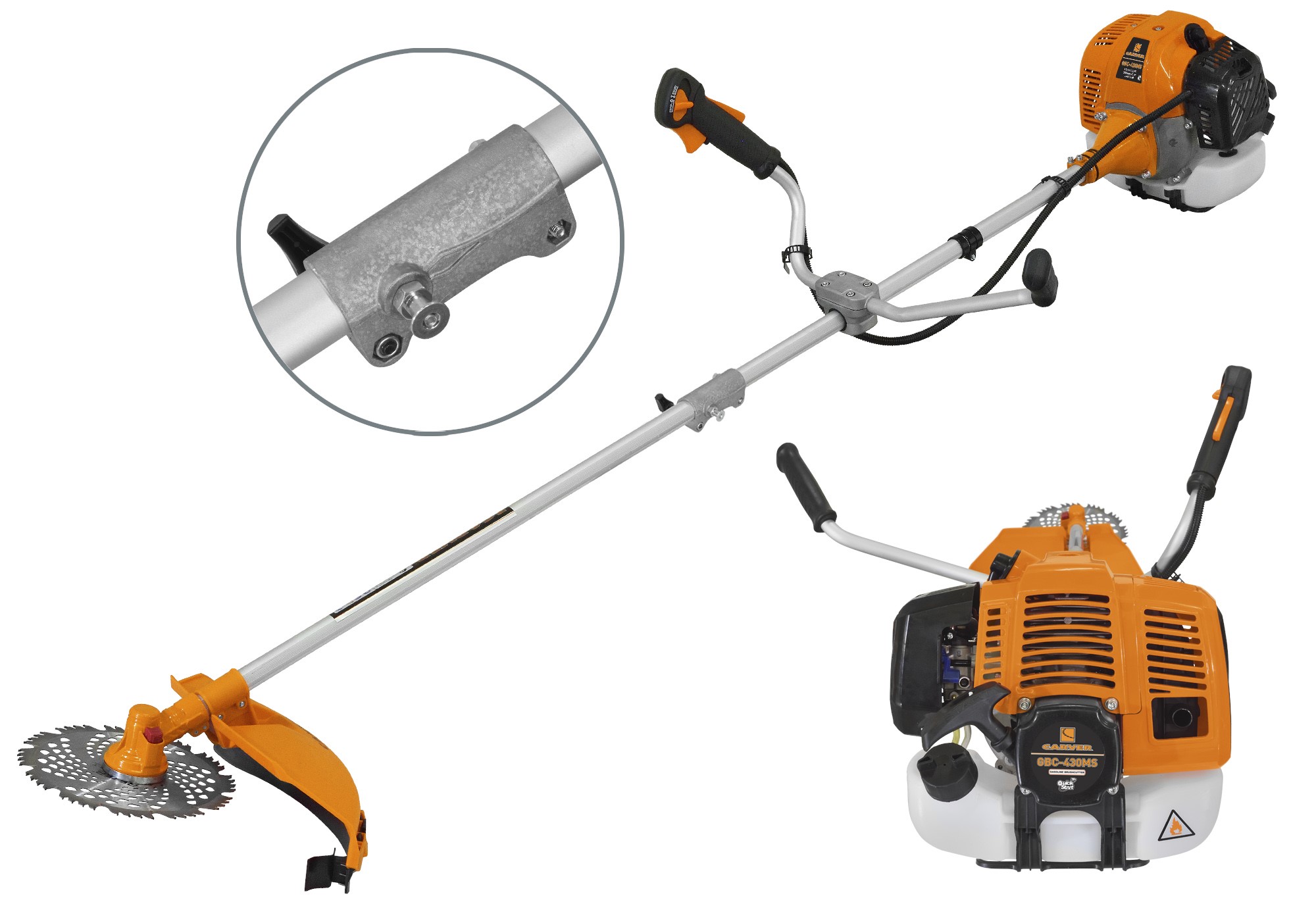 - Тип насадок: Дисковый нож GS-T с, триммерная леска (Ø 2,4 мм)
