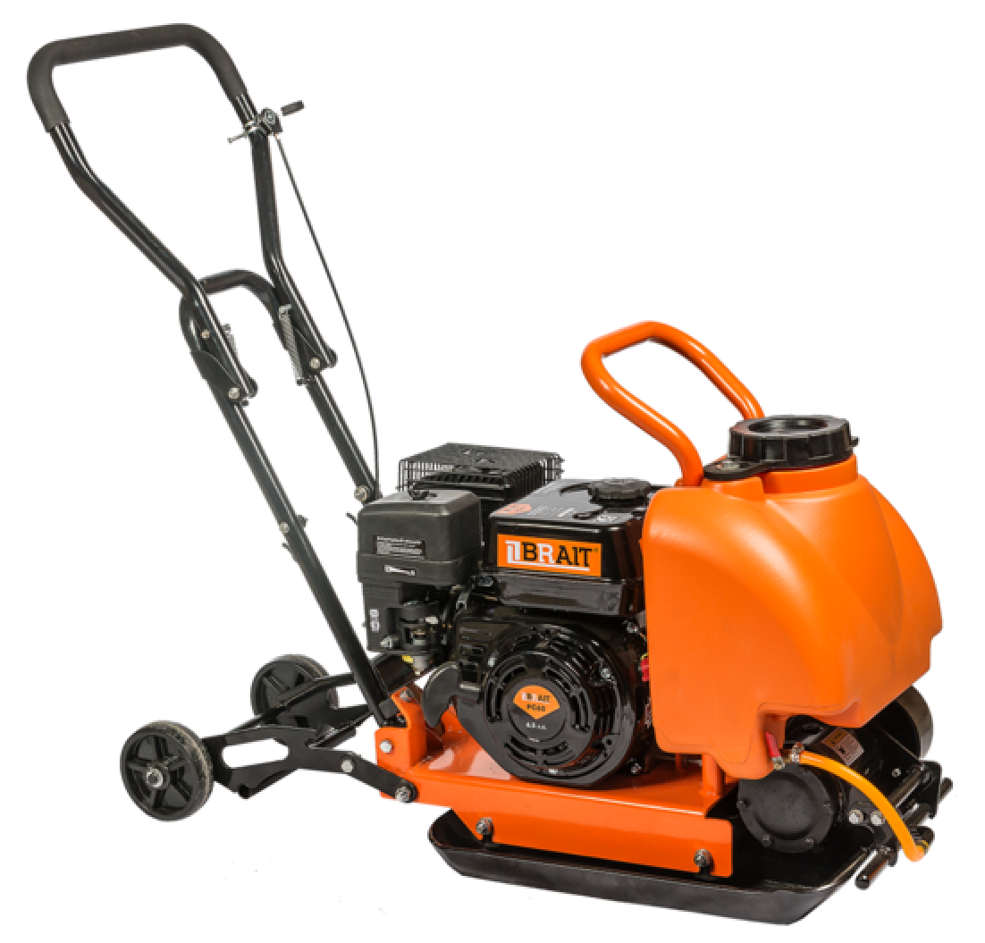 Brait PC 60 также может использоваться для уплотнения тротуарной плитки (в комплекте с полиуретановым ковриком), и для уплотнения различных видов грунтов, песка и т.д. Виброплита снабжена транспортировочными колёсами для перемещения, складной ручкой для удобной транспортировки. Основание виброплиты имеет загнутые края, что позволяет избежать полос при уплотнении асфальта и изготовлено из высокопрочной стали методом штамповки, что в отличии от сварки является более надежным способом изготовления.